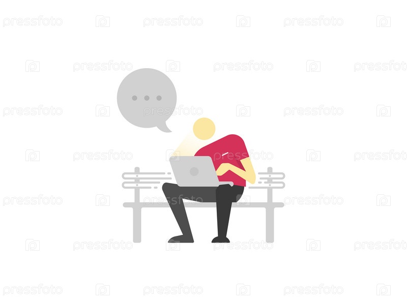 Человек сидит на скамейке с ноутбуком
