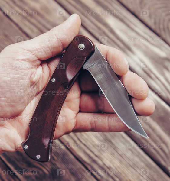 Складной нож в мужской руке