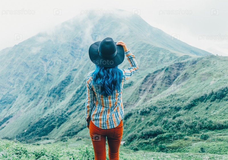 Женщина, глядя на горы