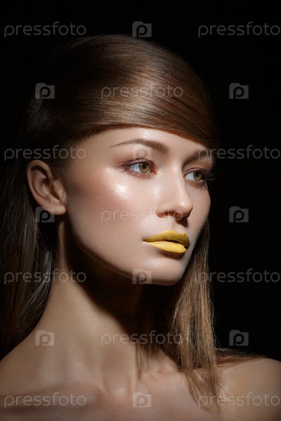 Красивая девушка с желтыми губами