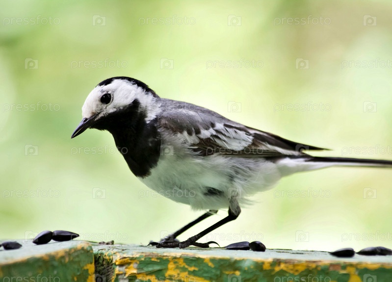 Трясогузка ест семена подсолнечника