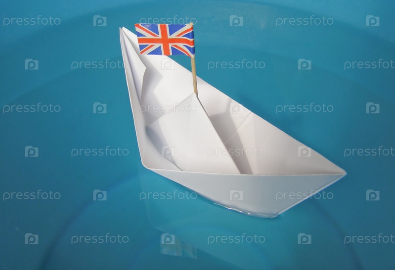 Бумажный кораблик с флагом Великобритании