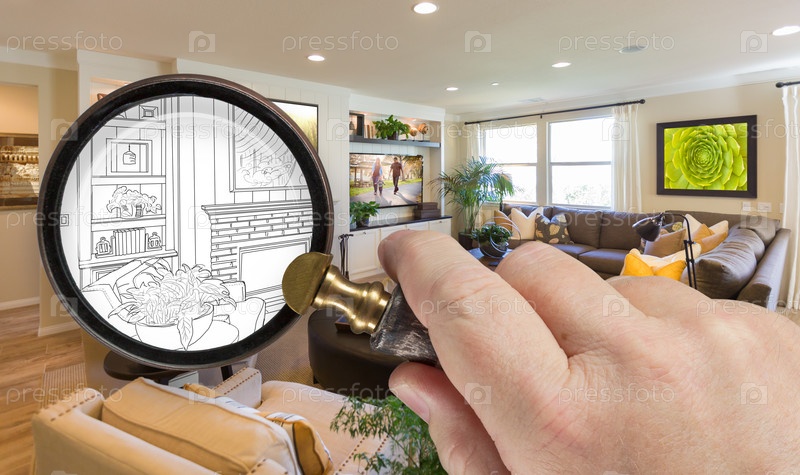 Увеличительное стекло на дизайне гостиной