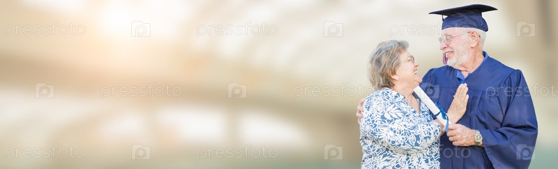 Пожилые женщина и мужчина на выпускной церемонии