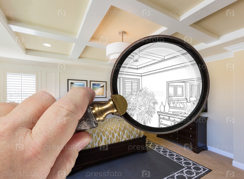 Увеличительное стекло на дизайне спальни