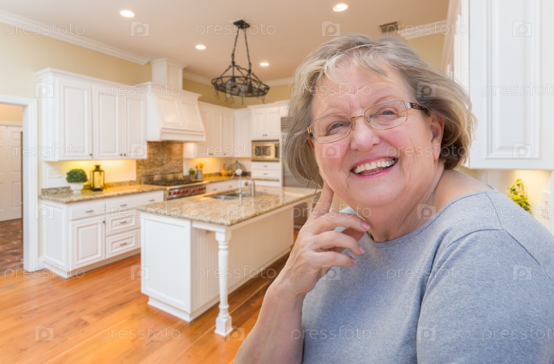 Счастливая пожилая женщина на кухне