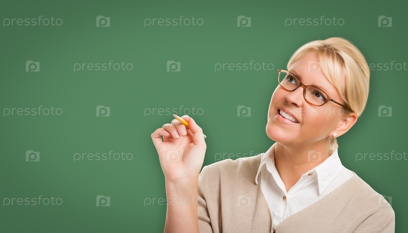 Привлекательная молодая женщина с карандашом