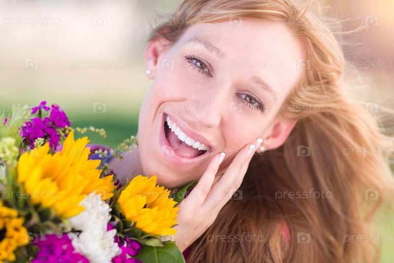 Портрет женщины, держащей букет цветов