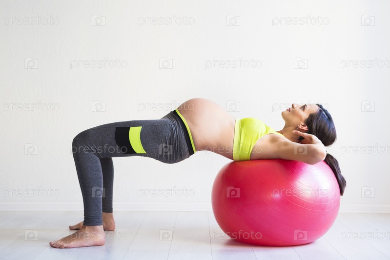 Молодая беременная женщина делает фитнес-упражнения