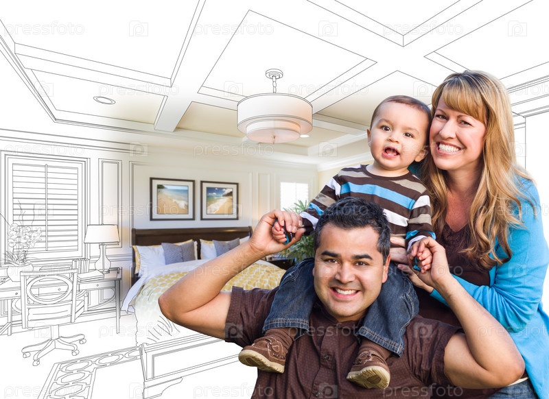 Семья с ребенком в новой спальне