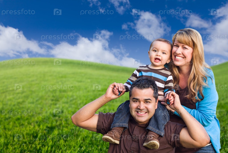 Молодая семья на газоне