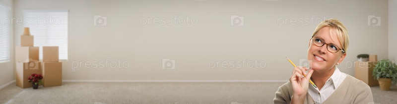 Молодая взрослая женщина в пустой комнате