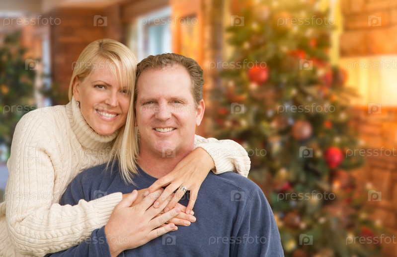 Влюбленная пара портрет у рождественской елки