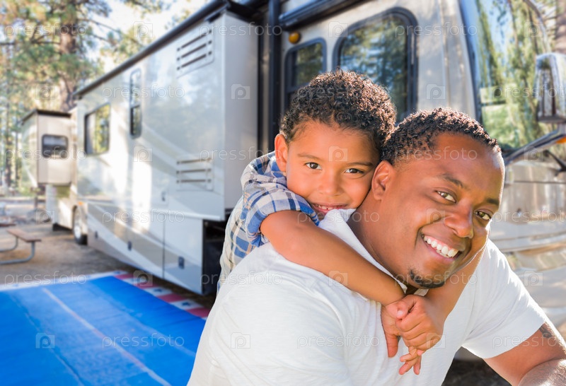 Отец с сыном в палаточном лагере