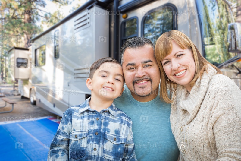 Счастливая семья в палаточном лагере