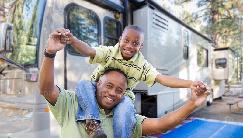 Отец и сын в палаточном лагере
