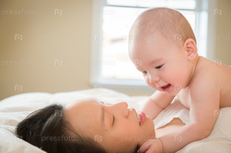 Малыш и мать лежа в постели