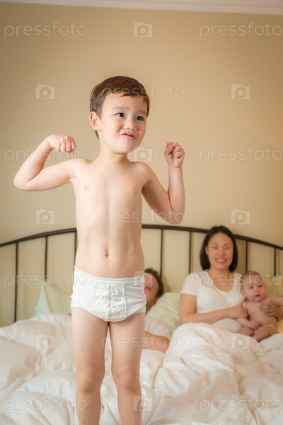 Мальчик прыгает на кровати