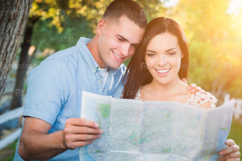 Счастливая пара над картой
