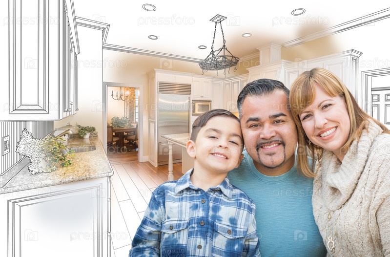 Молодая семья на кухне
