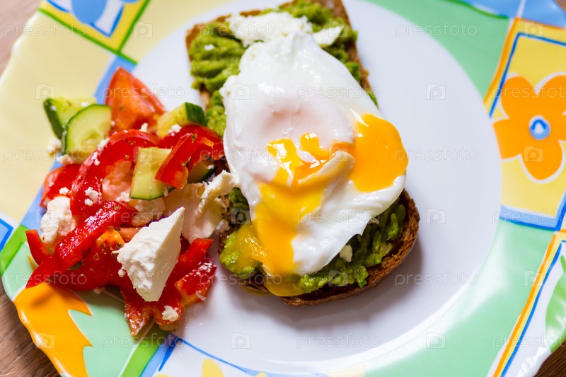 Бутерброд с яицами на черном хлебе с пастой из авокадо
