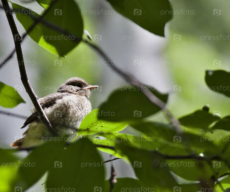 Птенец горихвостки сидит на ветке