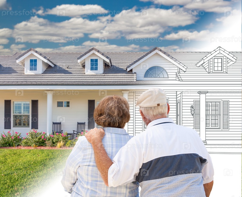 Пожилая пара, глядя на новый дом