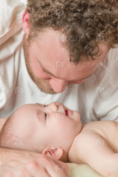 Малыш в постели с отцом