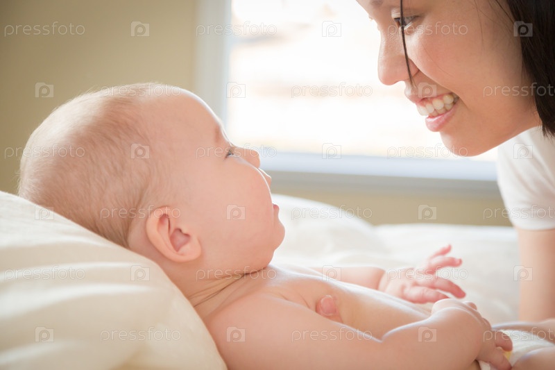 Малыш в постели с его матерью