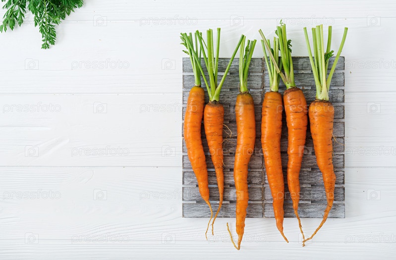 Пучок свежей моркови с зелеными листьями