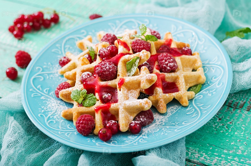 Бельгийские вафли с малиной и сиропом