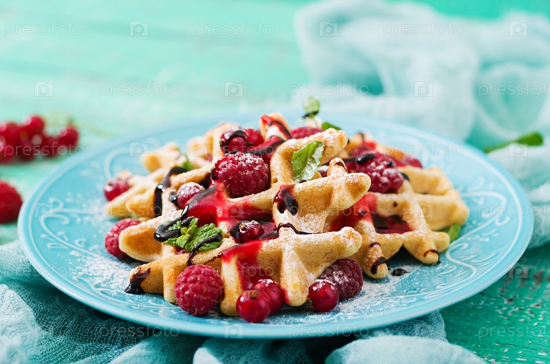 Бельгийские вафли с малиной и сиропом