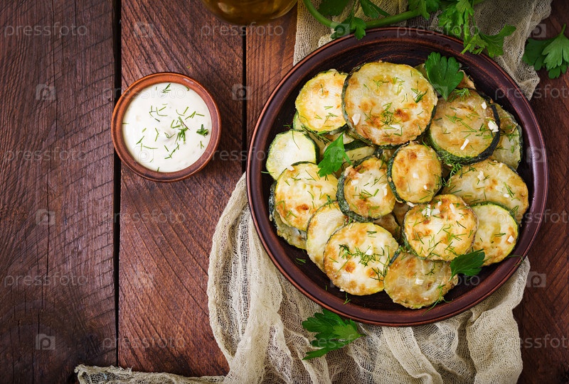 Жареные кабачки с соусом, укропом и чесноком