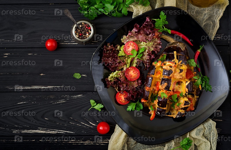 Баклажан, запеченный с сыром и помидорами
