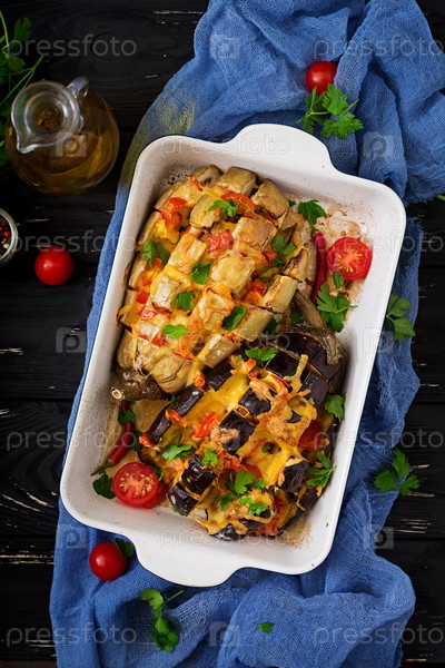 Баклажан, запеченный с сыром и помидорами