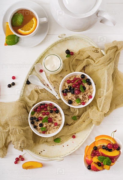 Вкусная и здоровая овсяная каша с ягодами и семенами льна