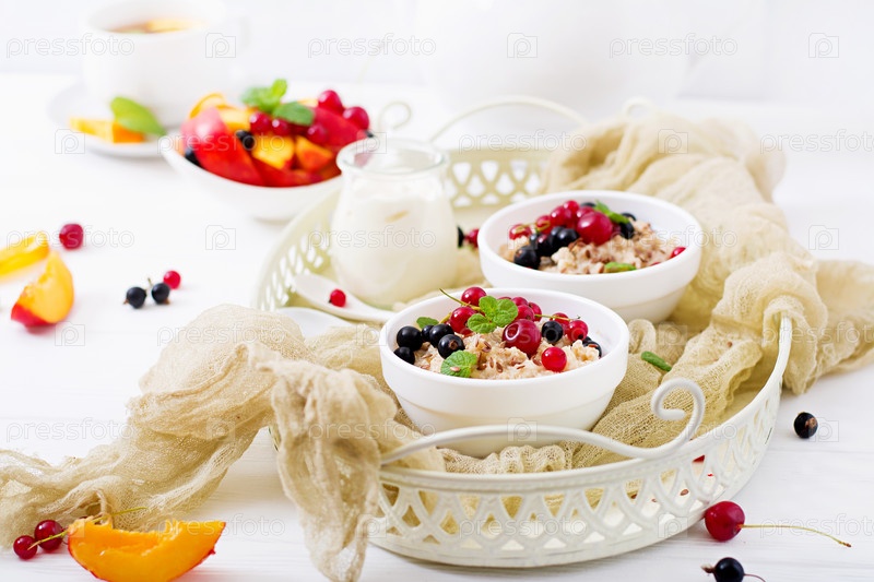 Вкусная и здоровая овсяная каша с ягодами и семенами льна
