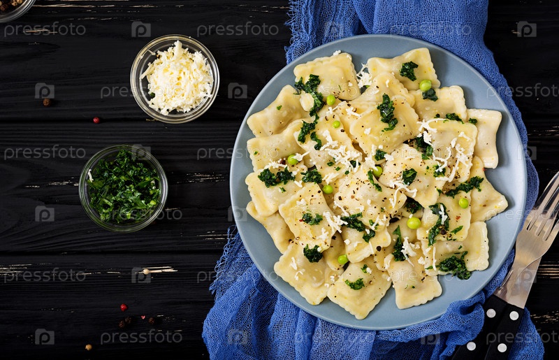 Равиоли с рикоттой и молодым зеленым горошком