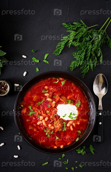 Традиционный украинский русский борщ с белой фасолью