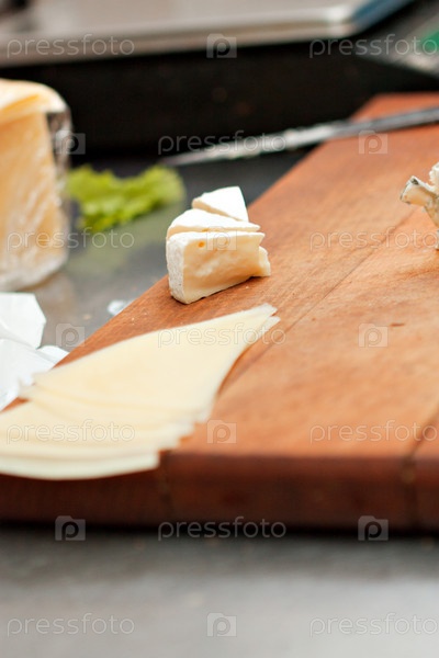 Кусочки сыра на деревянной доске