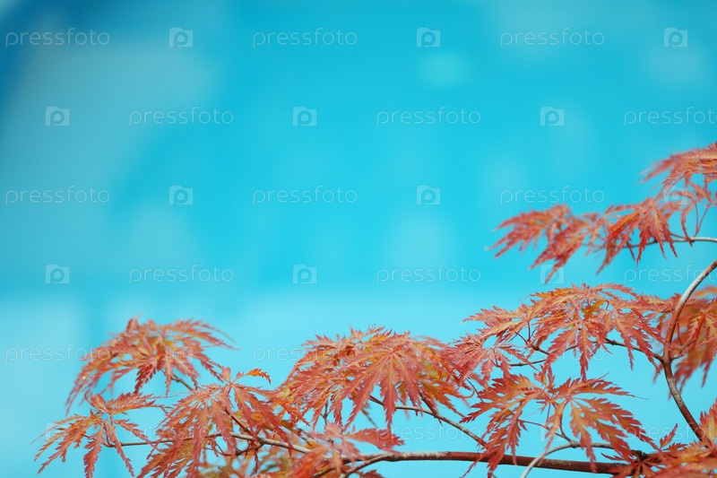 Листья на голубом фоне