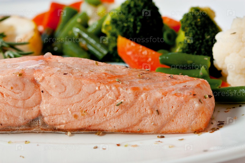 Кусочки рыбы с овощами на тарелке