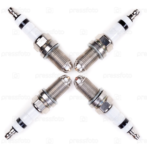 Набор из четырех свечи зажигания на белом фоне