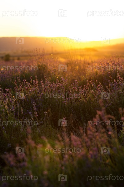 Закат на пурпурном поле лаванды в Крыму