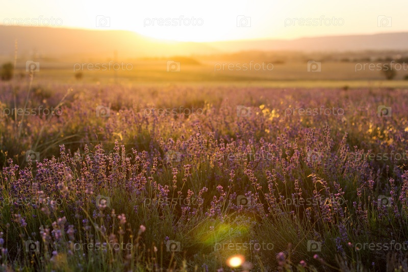 Закат на пурпурном поле лаванды в Крыму