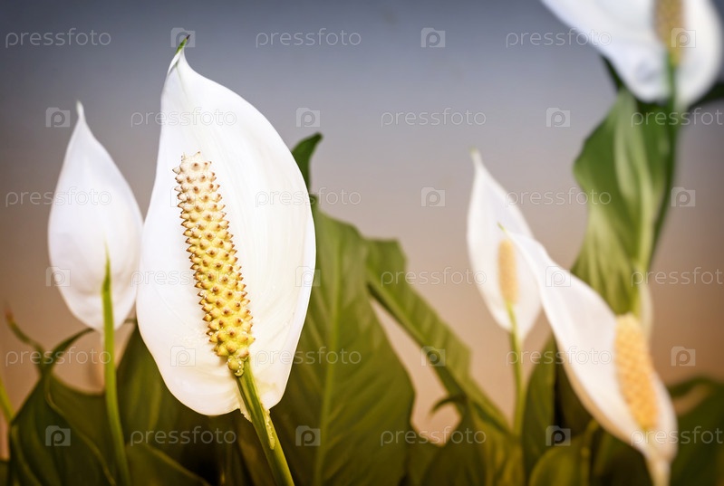 Цветущие белые цветы Спатифиллум