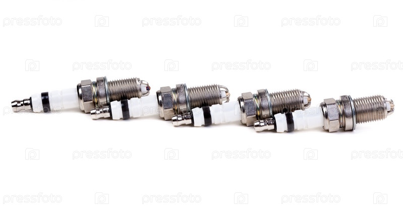 Набор из четырех свечи зажигания на белом фоне
