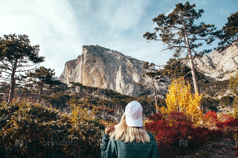 Девочка в осеннем лесу на горе