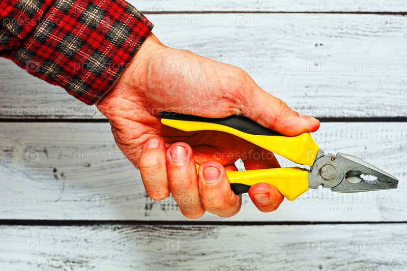 Плоскогубцы в мужской руке