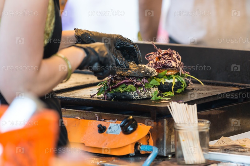 Шеф-повар делает гамбургеры